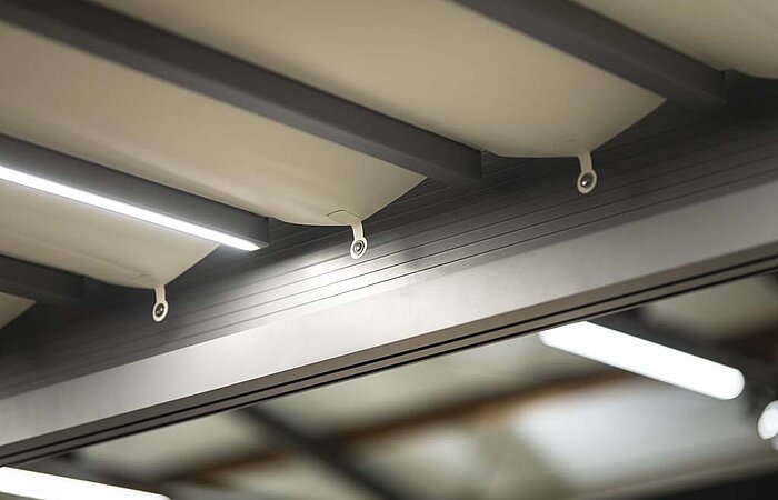 Verpackt in einem modernen Design vereint die Faltmarkise Pro perfekten Schutz vor Sonne, Wind und Regen.