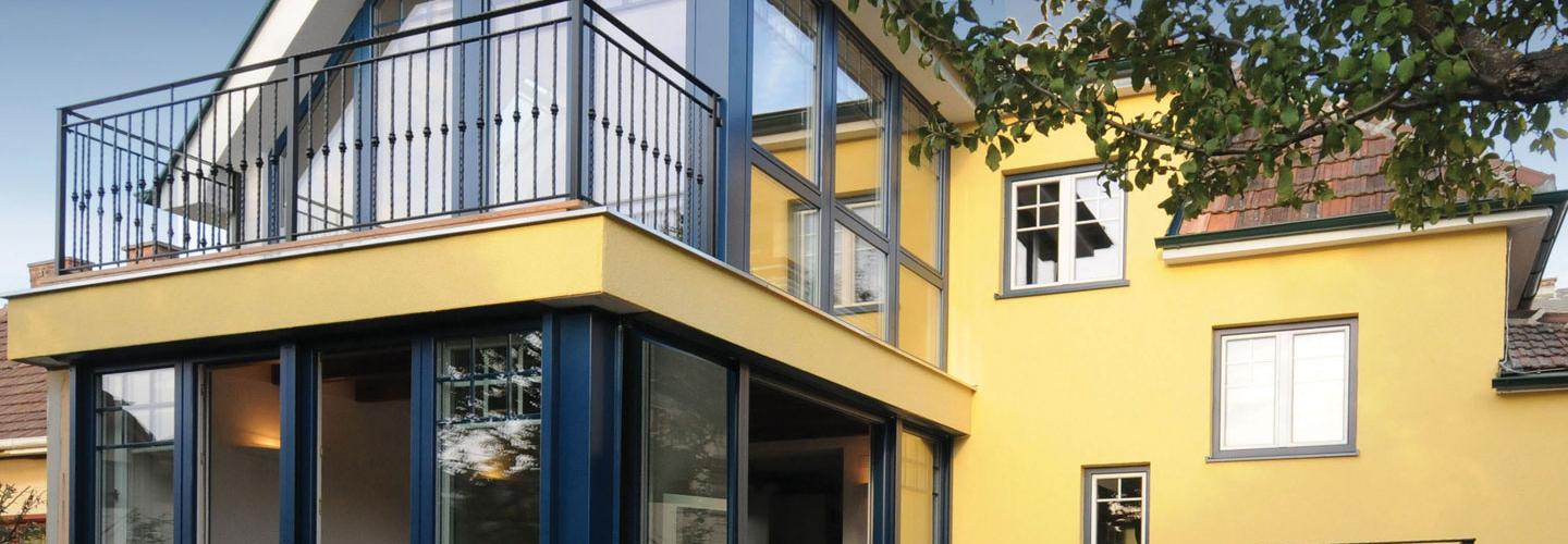 Holzalu-Fenster mit Dreischeibenverglasung, standardmäßig einbruchhemmend.