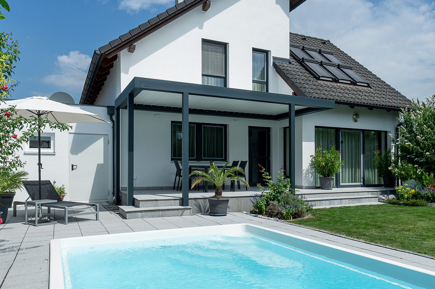 Lamellendach mit eingerückten Stehern