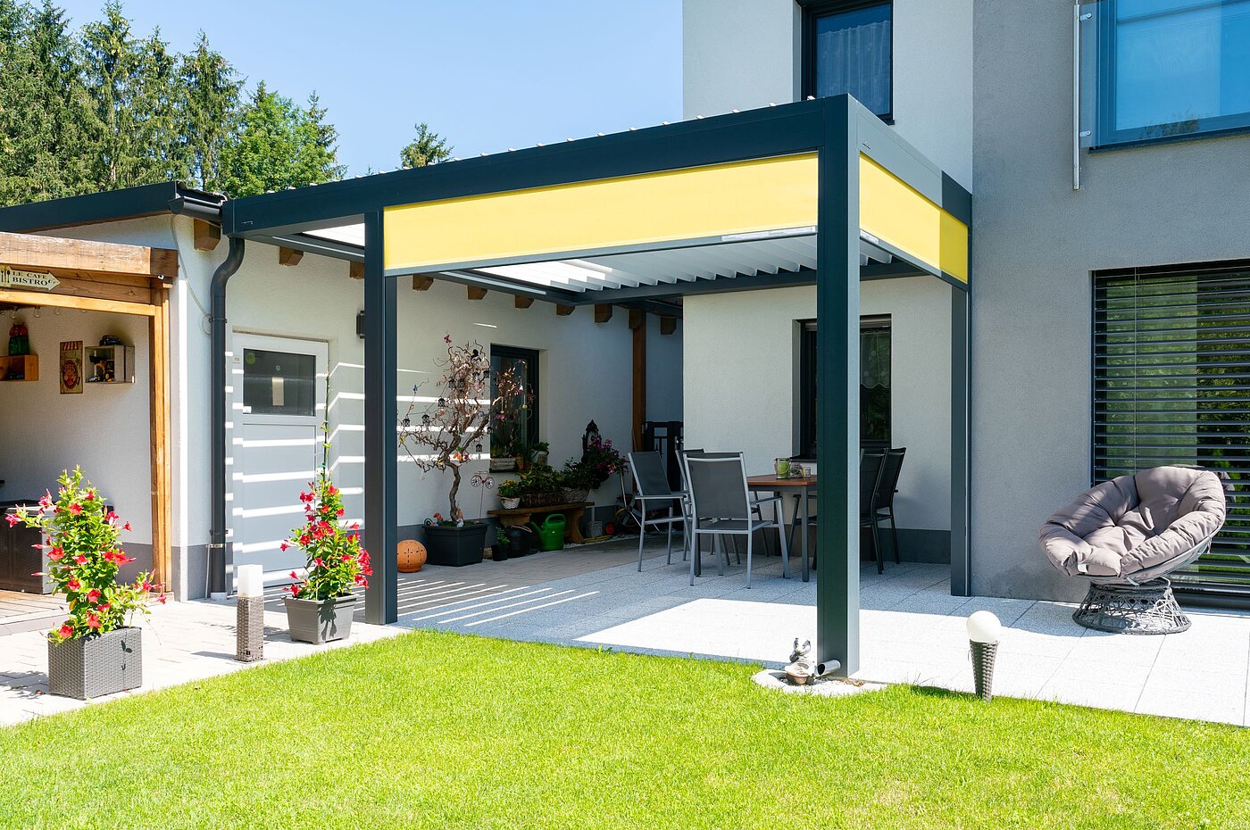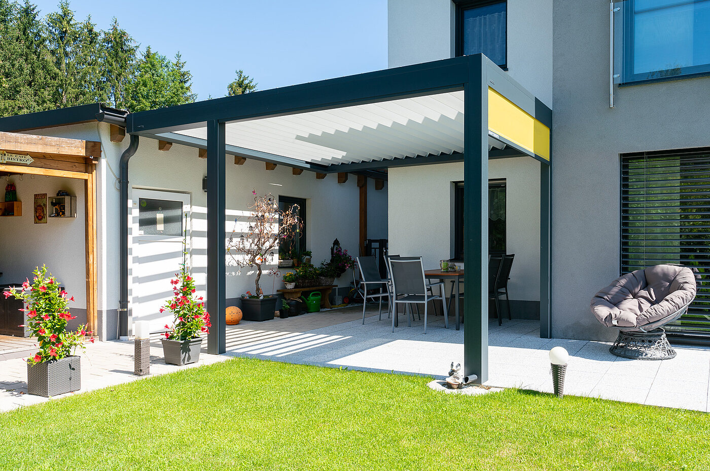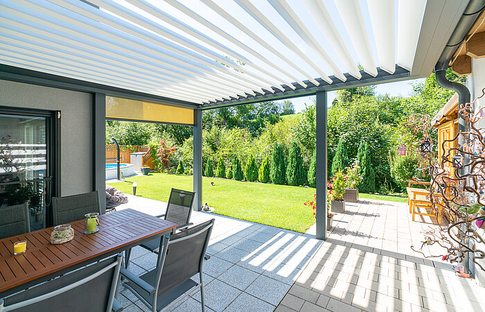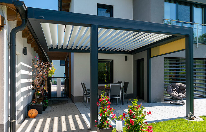 Durch die flexible Handhabung ist das Lamellendach eine Bereicherung für jede Terrasse.