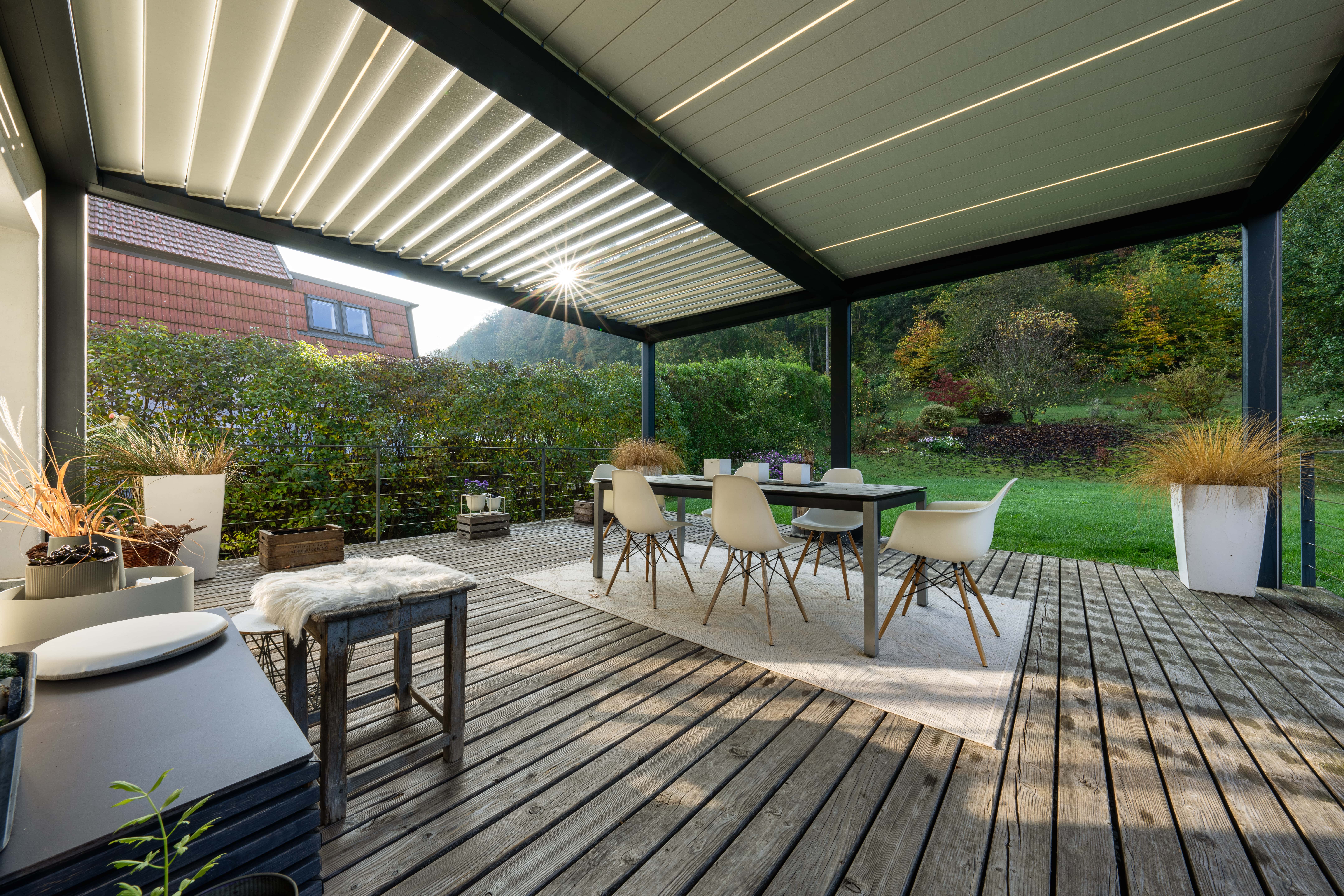 Das Lamellendach verzeichnet unsere höchste Zuwachsrate. Kein Wunder – es bietet nahezu vollständigen Schutz bei fast jedem Wetter, kombiniert mit stilvollem Design.