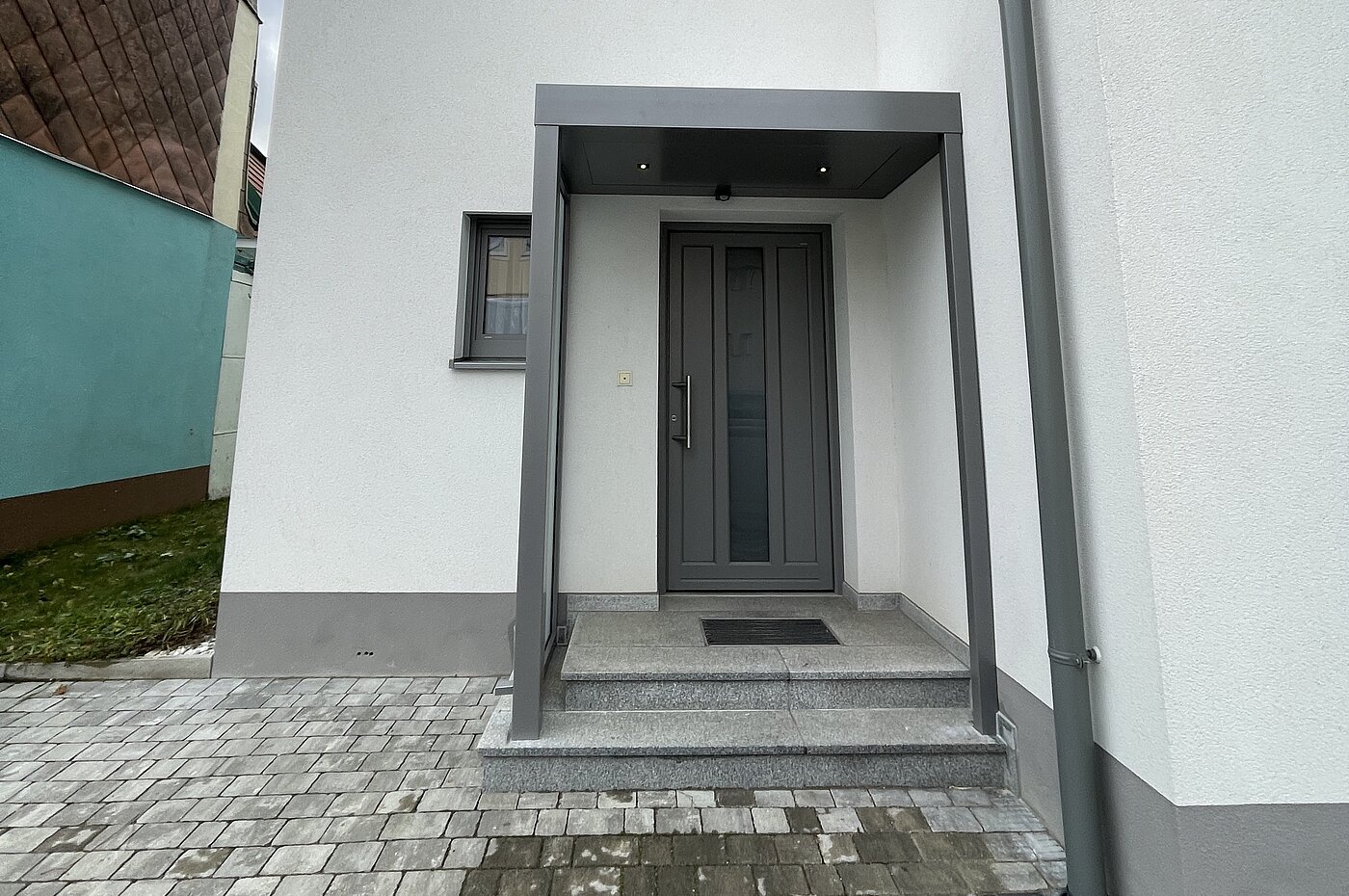 Das Vordach zählt zur Visitenkarte des Hauses und verleiht jedem Eingangsbereich einen modernen und eleganten Charakter.