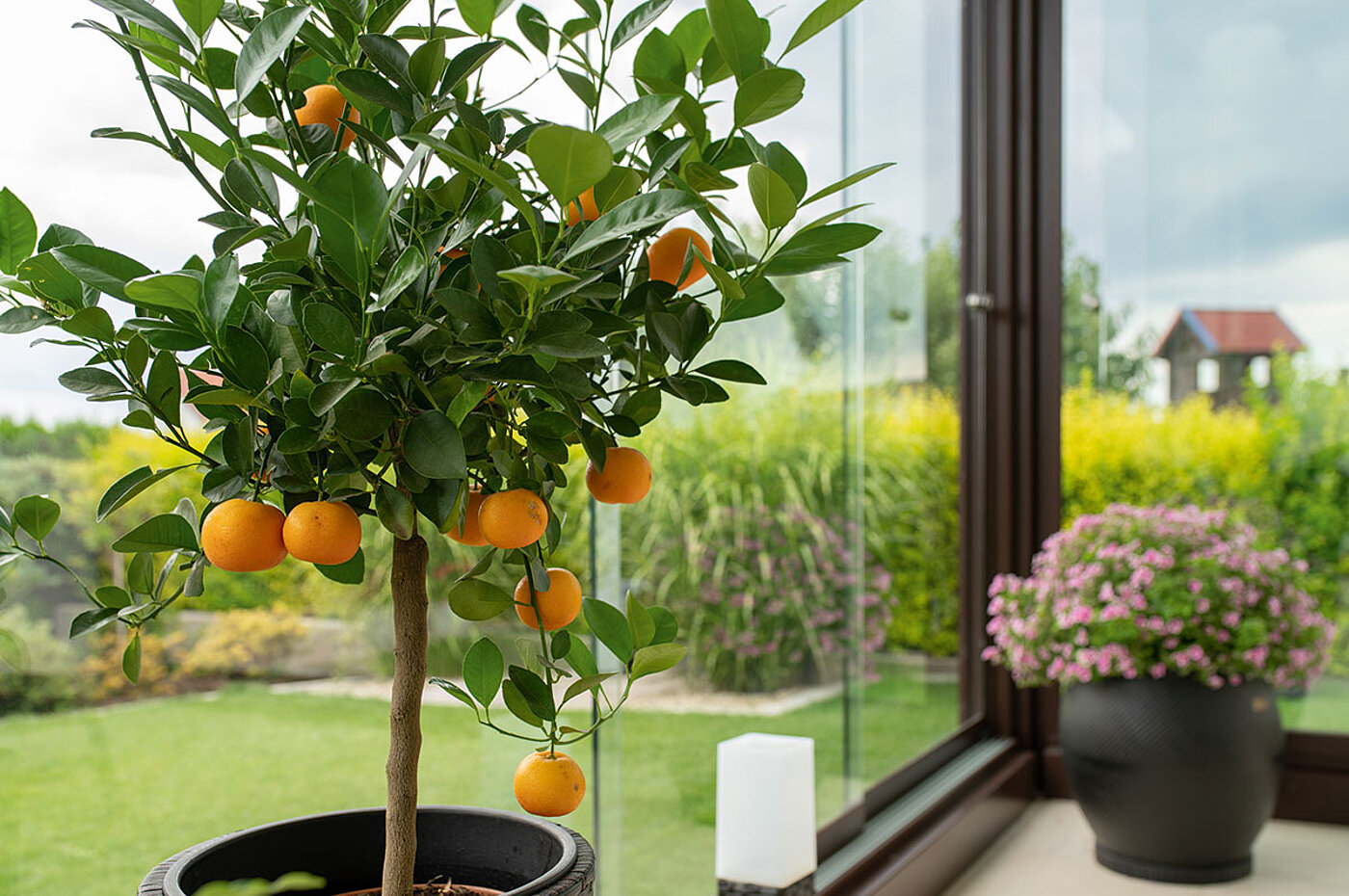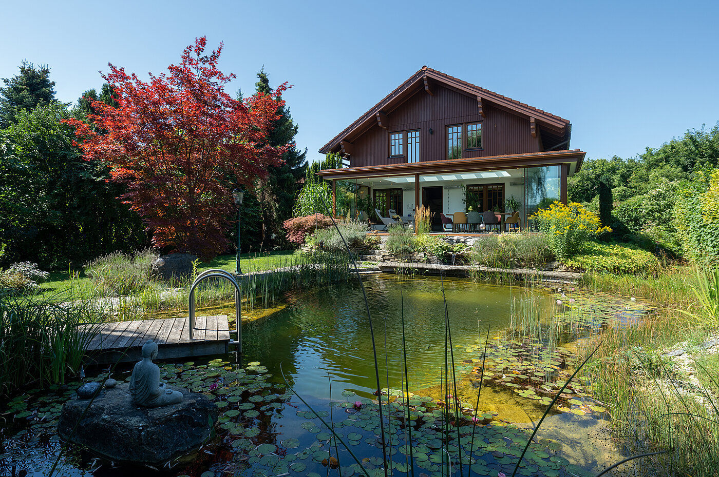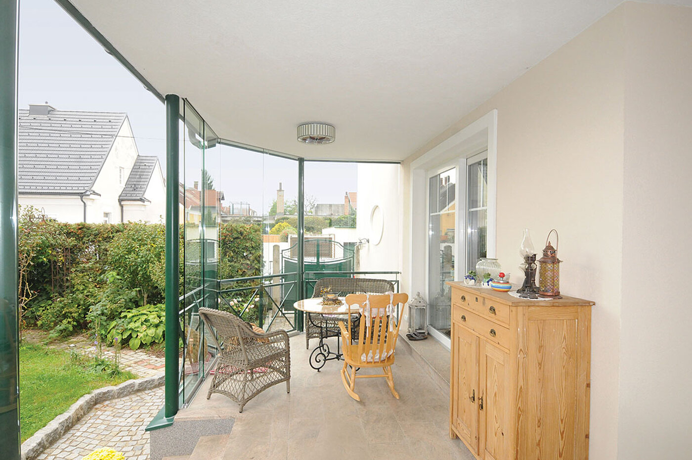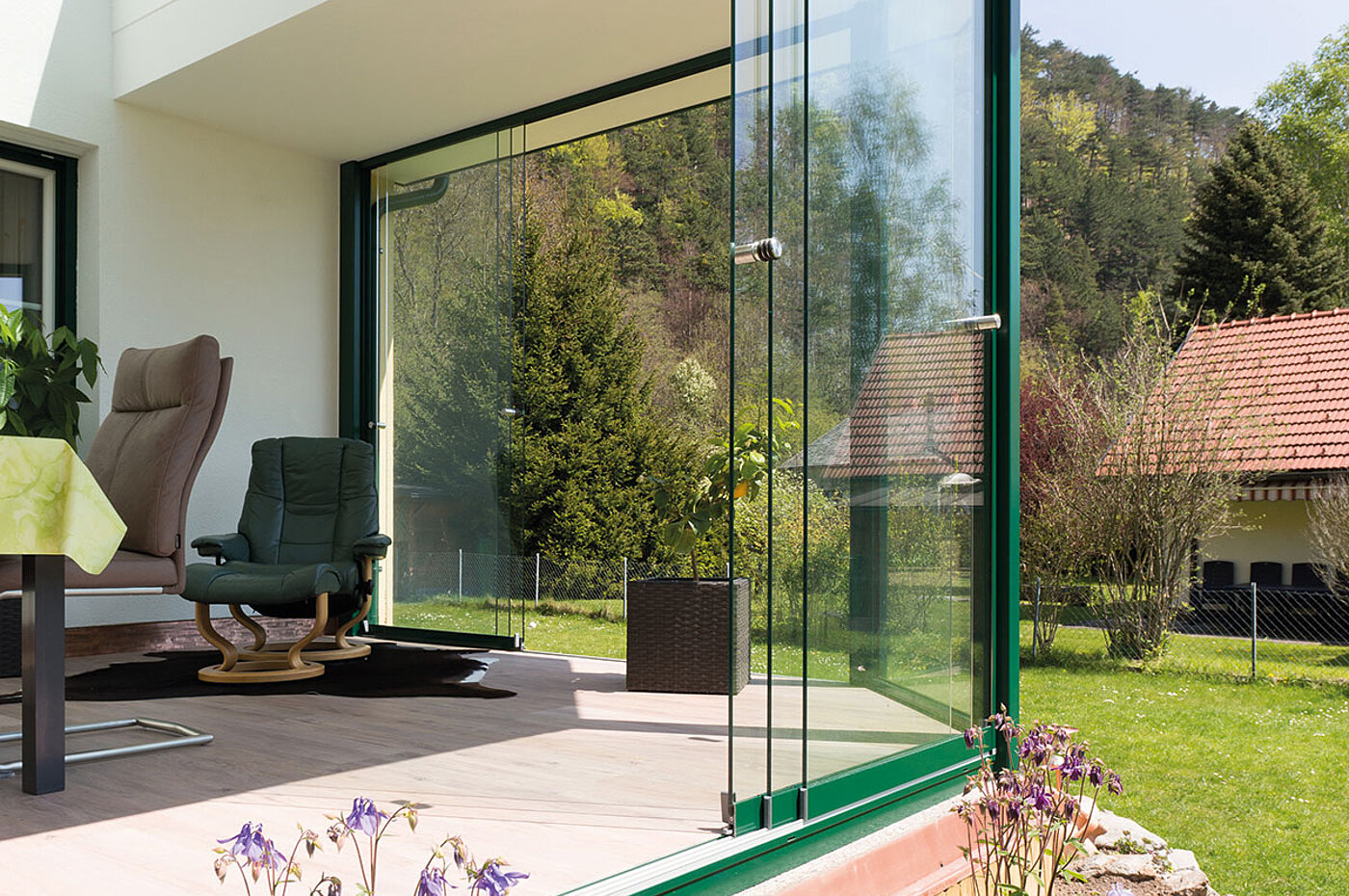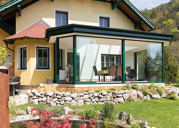 Massivdach mit optimalem Sonnenschutz und transparenter Sicht in den Garten.