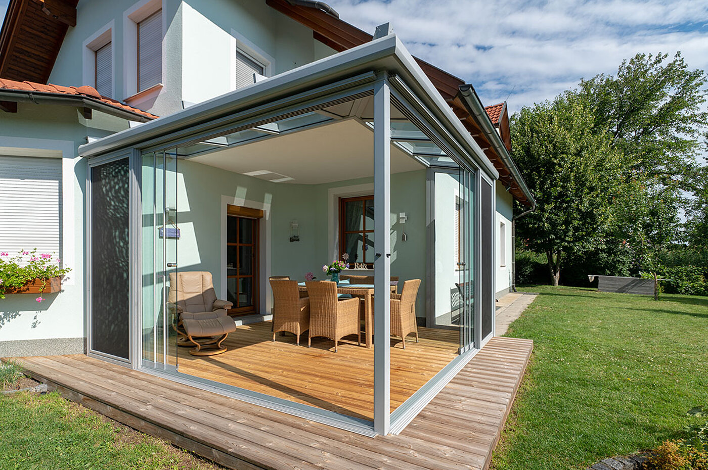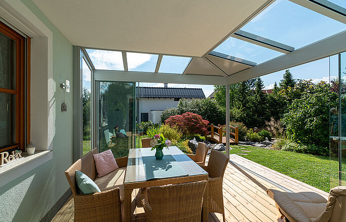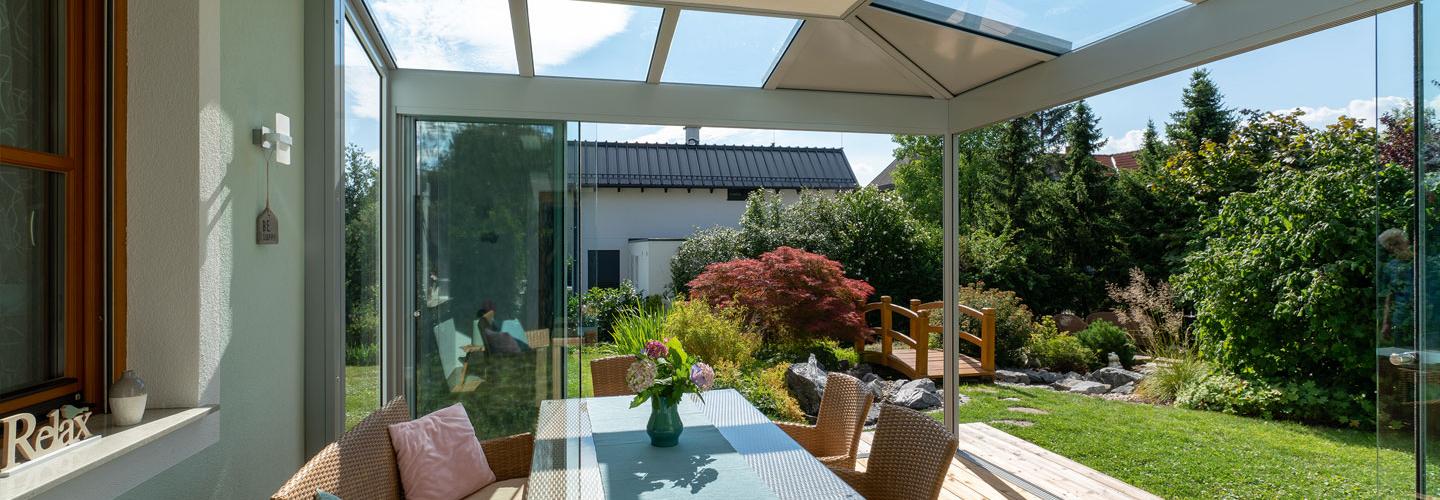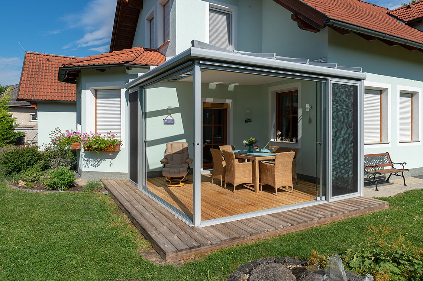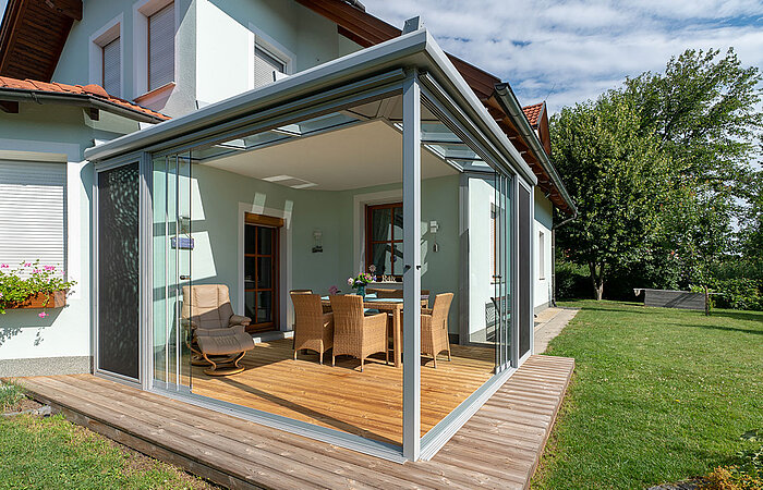 Sommergarten mit Alupaneel im Eckbereich