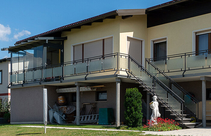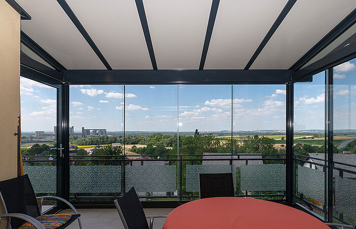 Um eine aufwändige Glasdachreinigung auf 7 Meter Höhe zu vermeiden, wurde statt einem Glasdach ein Dach mit Alupaneelen gebaut.