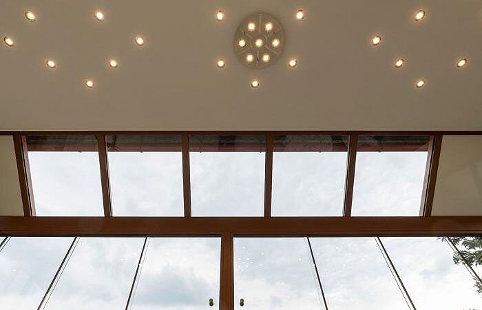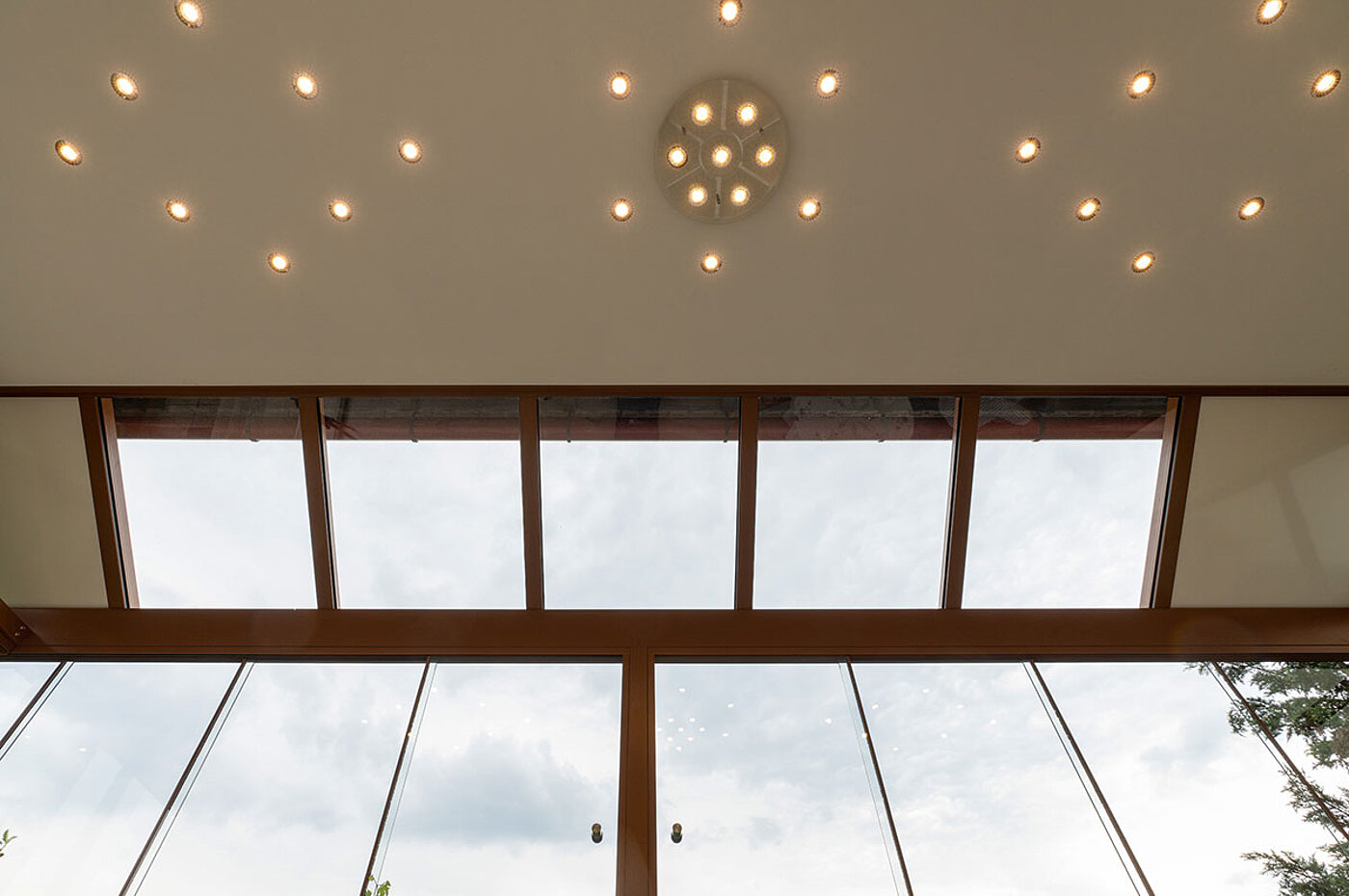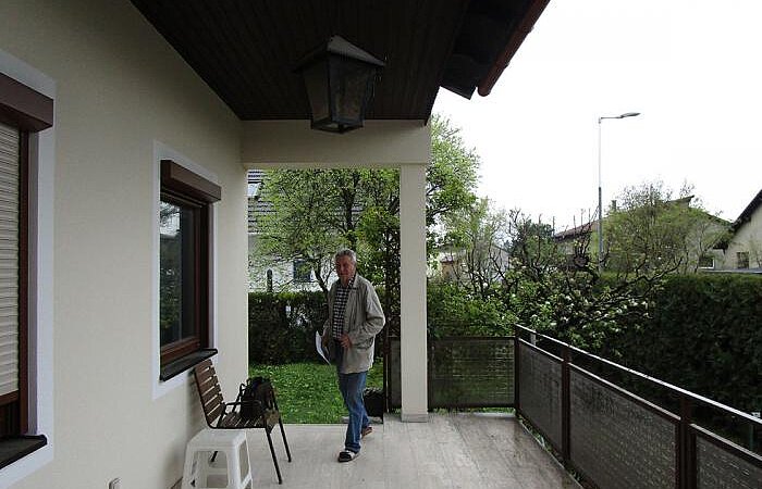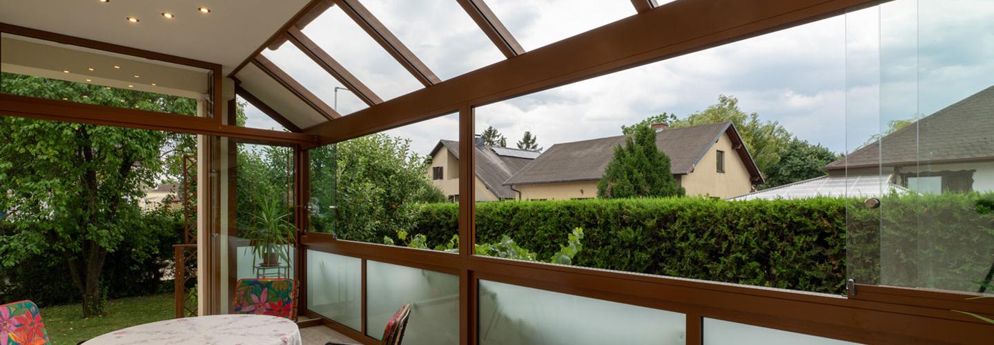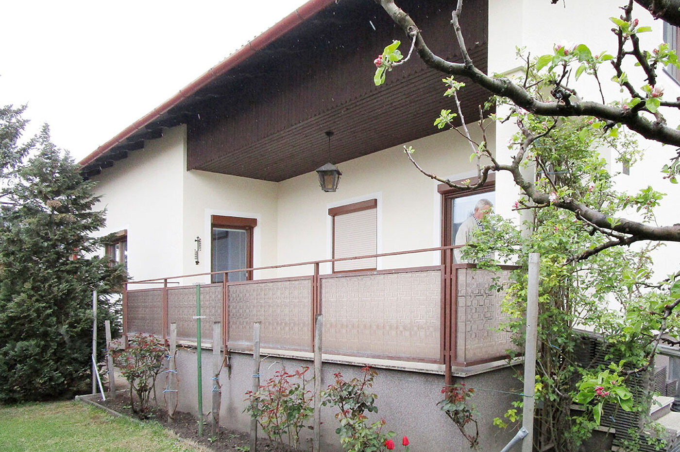 Bei diesem Sommergarten ersetzt eine Glasbrüstung mit Mattglas ein bestehendes Geländer.
