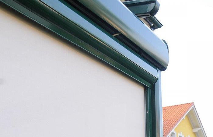 Ziplines oder Senkrechtmarkisen sind Außenbeschattungen mit Funkmotor und Fernbedienung und bestehen aus Sunscreen Stoff, der zumeist halbtransparent ist.