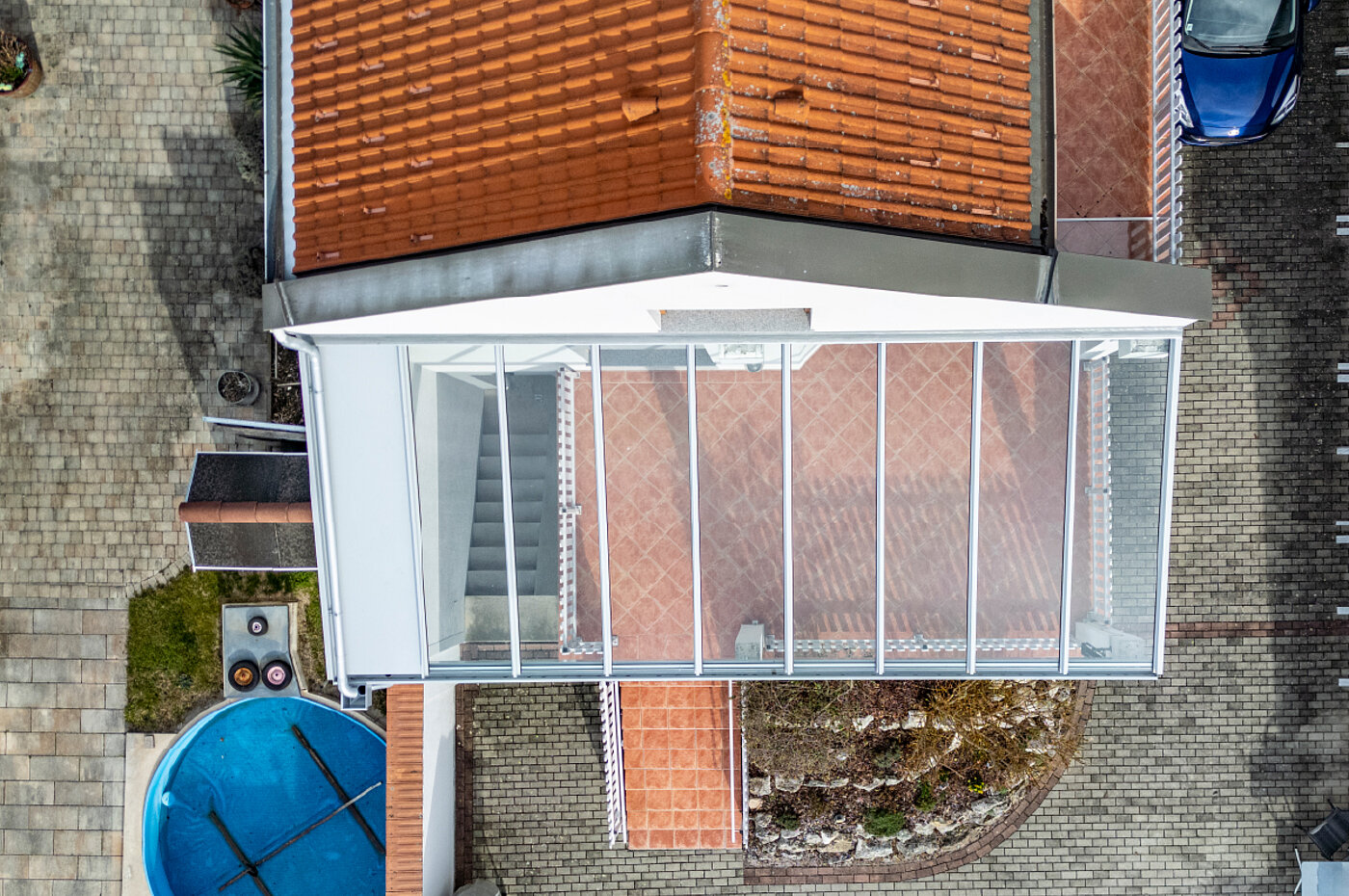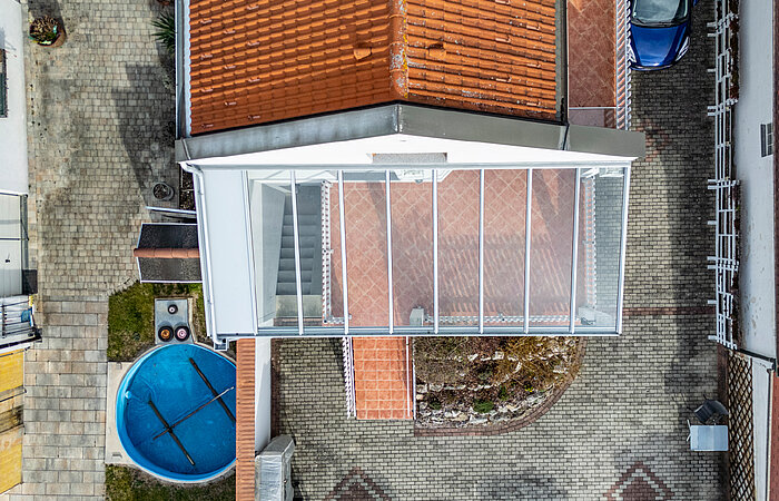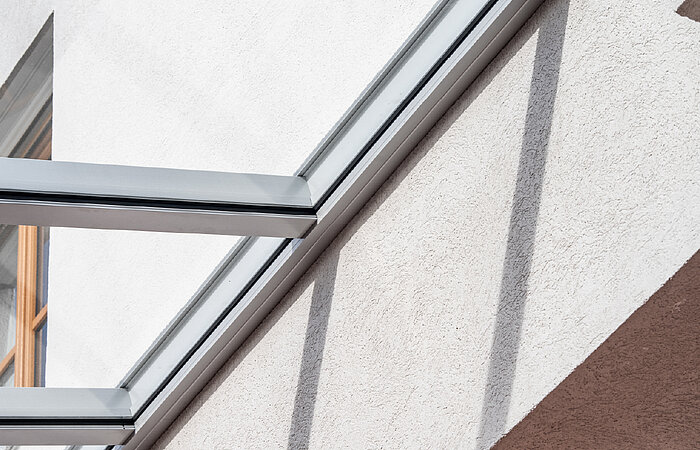 Das Glasdach wurde direkt an der Hauswand montiert.