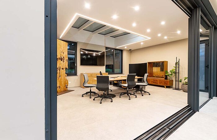 In dem lichtdurchflutetem Wohnraum des modern designten Wintergarten fühlt man sich das ganze Jahr über der Natur ein Stück näher.