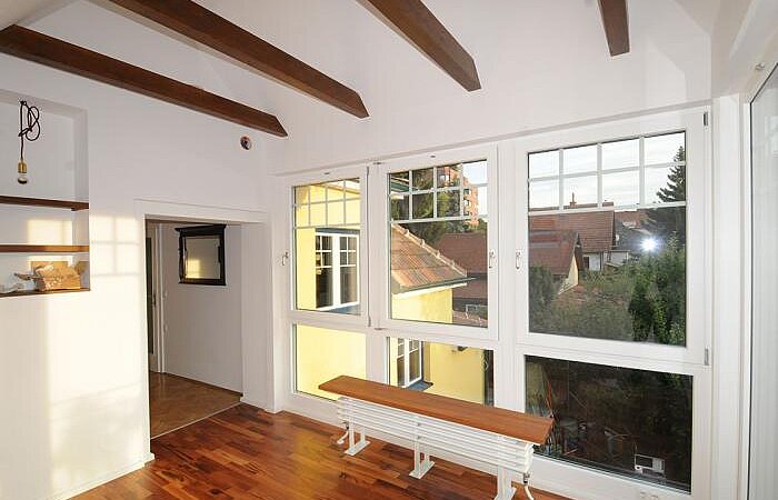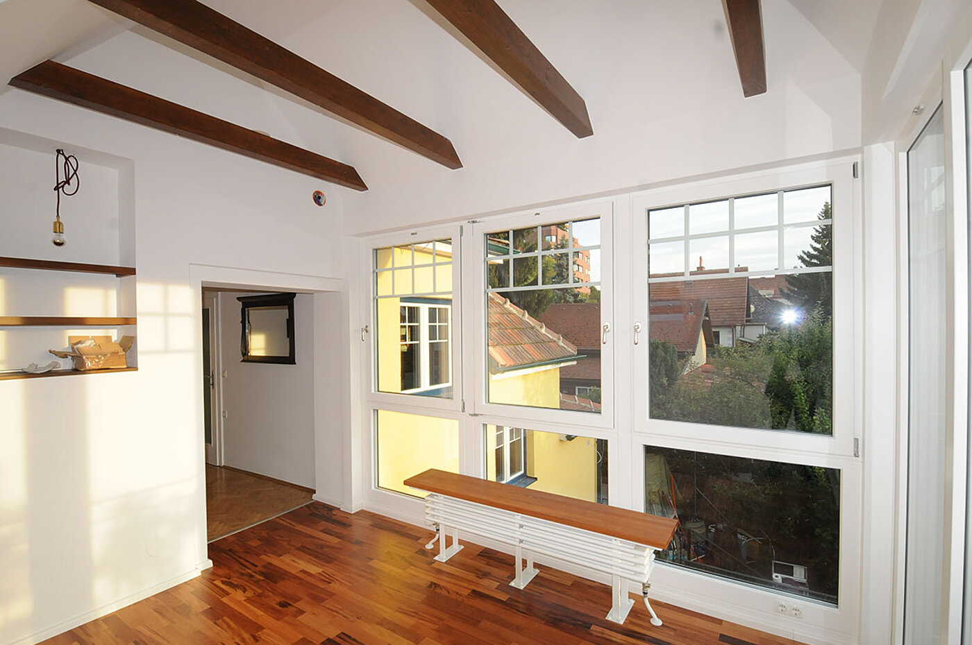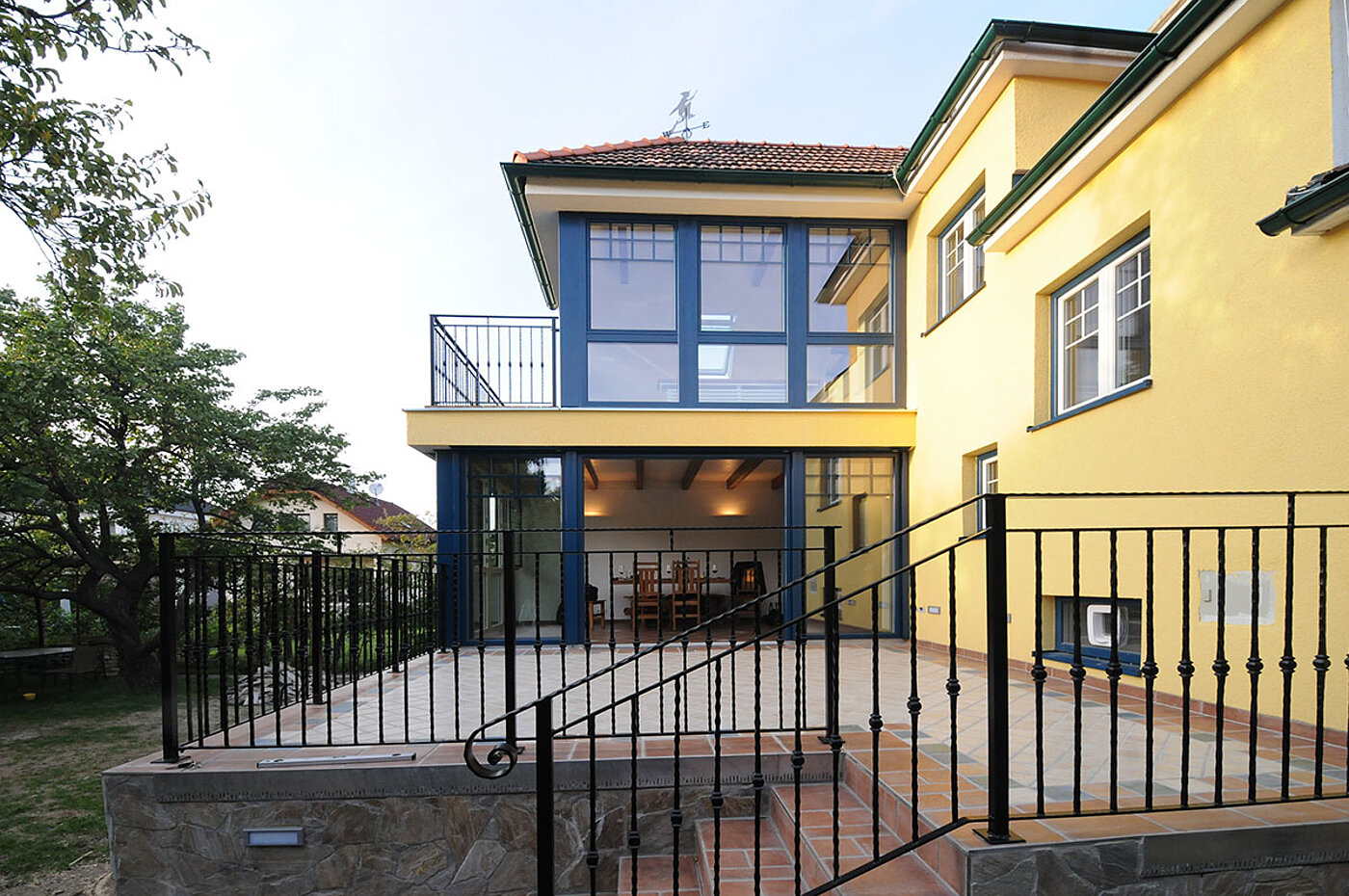 An diesem Haus sorgt ein großzügiger, zweigeschossiger Wintergarten für eine beträchtliche Steigerung der Wohnqualität.